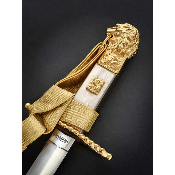 Všechny viditelné kovové části pochvy jsou ve zlaceném provedení.