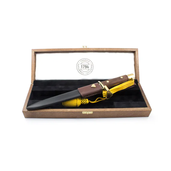 Náš výrobek – věrnou kopii důstojnického nože M-1917 jsme se pokusili zpracovat tak, aby co nejvěrohodněji vystihl zručnost nožířů, kteří jej vyrobili, a současně vám navodil pocit symbolu, který odlišoval velitele od vojáka.