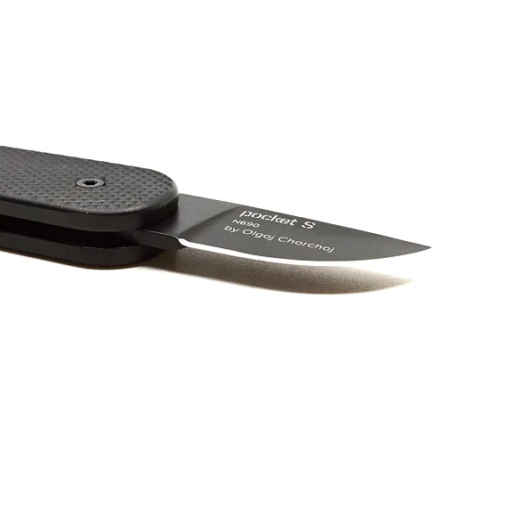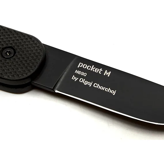 Nůž POCKET je z firmy Mikov, která sídlí v srdci Českého Švýcarska ve městě Mikulášovice. Nůž POCKET je precizní a elegantní nástroj, který splňuje ty nejvyšší nároky na kvalitu zpracování. Čisté linie, pevnost konstrukce, odolnost povrchu a ušlechtilost oceli umocňují rukopis designérů ze studia Olgoj Chorchoj. Každá součástka je pokryta DLC vrstvou, která spojuje neotřelou krásu a vynikajícími mechanickými vlastnostmi. Příkladem využití může být krájení potravin, využití ve městě.