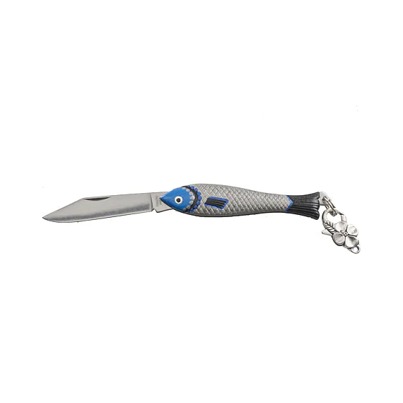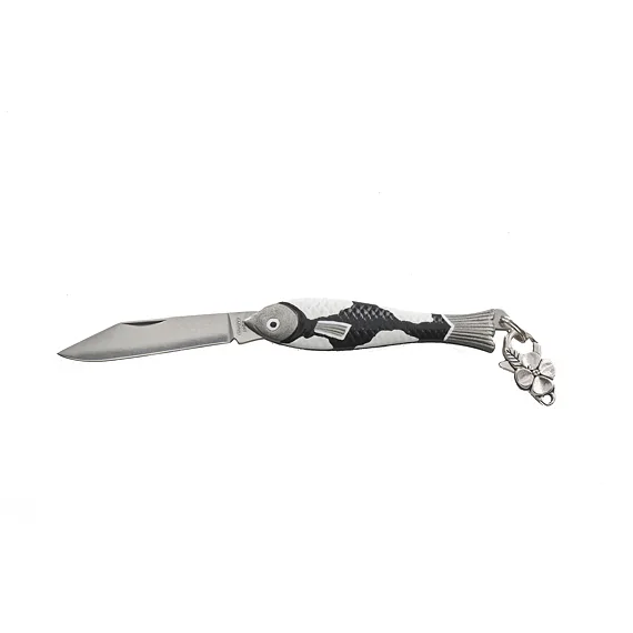 Střenky nože Rybička jsou vyrobeny ze zinkové slitiny a čepel nože je z kvalitní nerezové oceli typ 420 s tvrdostí 52-55 HRc.
