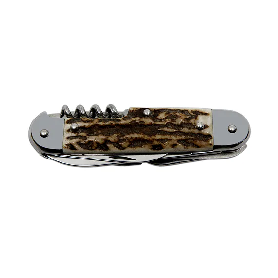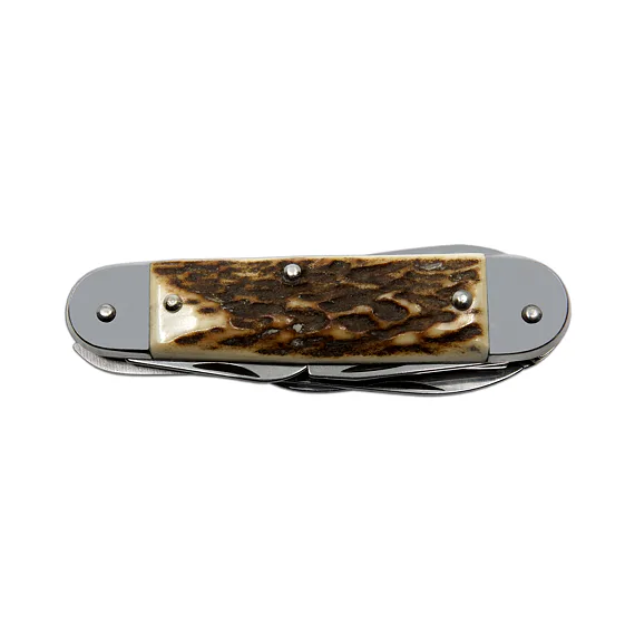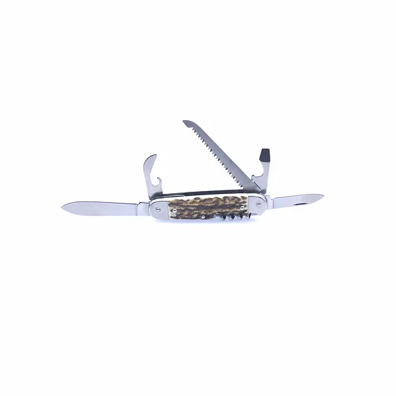 Kapesní zavírací nůž STOVKA lovecký 7dílný s pilkou, vývrtkou, otvírákem na láhve a konzervy - střenka paroh 233-NP-7