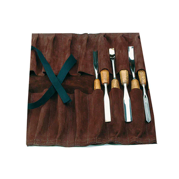 Velký a malý kožený kapsář pro uložení řezbářských dlát.