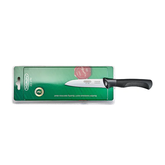 Kuchyňský nůž, který je určen na škrábání a krájení zeleniny, uzeniny a masa. Jeho předností je lehkost, pevnost a odolnost. Díky jeho velikosti patří tento nůž k nejoblíbenějším pomocníkům v kuchyni. Nůž má čepel 90 mm dlouhou, středošpičatého tvaru se spodním výbrusem a je zhotovená z kvalitní nerezové oceli 420 o tvrdosti 53-55 HRc.