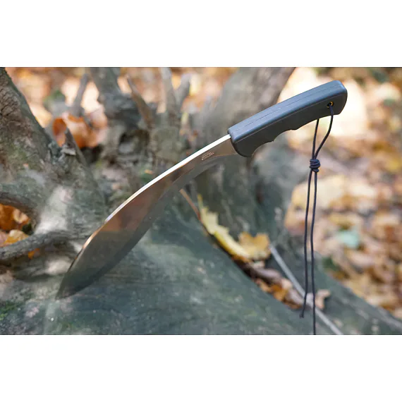 Nůž s názvem GURU má tvar klasické mačety zaobleného tvaru s ergonomickou rukojetí.