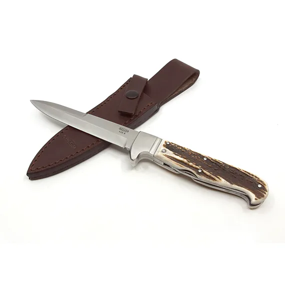 Lovecká dýka s pevnou čepelí s názvem JELEN je oblíbeným nožem pro lovce, kteří mají rádi kvalitní nůž, na který se mohou spolehnout.
