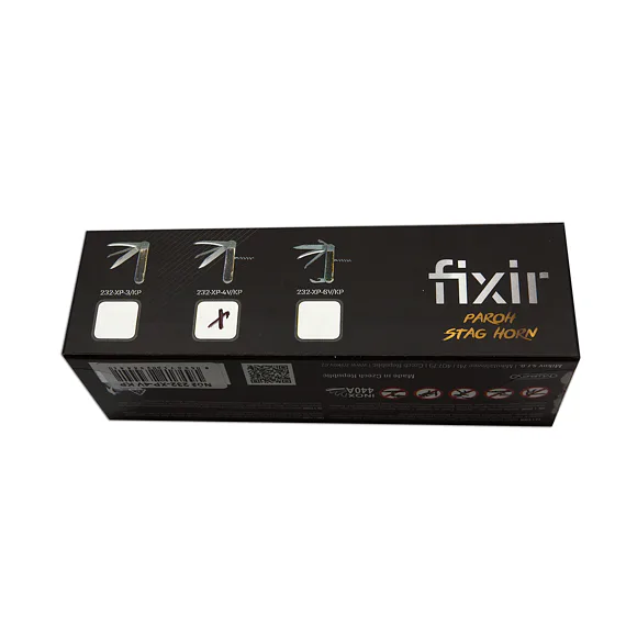 Lovecký nůž FIXIR je vybaven čepelí z velmi kvalitní nerezové oceli 440A o tvrdosti 54-57 HRc. Čepel loveckého nože FIXIR má kónický výbrus, což umožňuje nejen lepší řezivost, ale i údržbu. Tento typ loveckého nože FIXIR je také vybaven kvalitní pilkou s dvěma řadami zubů, páráčkem a vývrtkou. Lovecký nůž FIXIR je vybaven hřbetní pojistkou backlock, pro větší bezpečnost při práci s nožem. Střenky loveckého zavíracího nože FIXIR jsou vyrobeny z pravého jeleního parohu. Lovecký nůž FIXIR je dodáván včetně koženého pouzdra s logem Mikov a papírové krabičky.