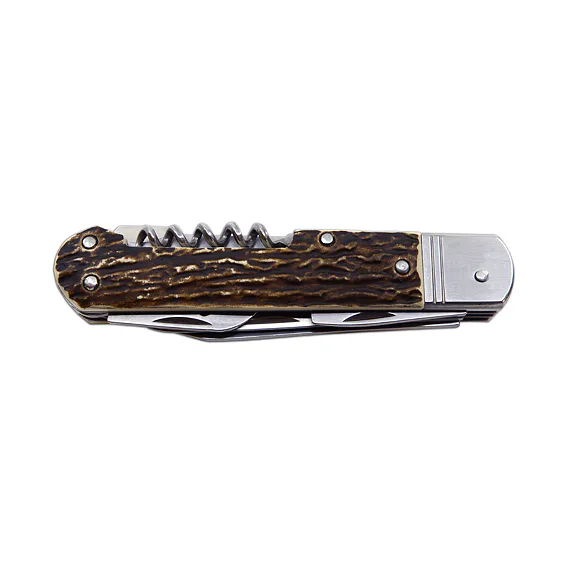 Lovecký nůž FIXIR je vybaven čepelí z velmi kvalitní nerezové oceli 440A o tvrdosti 54-57 HRc. Čepel loveckého nože FIXIR má kónický výbrus, což umožňuje nejen lepší řezivost, ale i údržbu. Tento typ loveckého nože FIXIR je také vybaven kvalitní pilkou s dvěma řadami zubů. Dále je tento lovecký nůž FIXIR vybaven vývrtkou, otvírákem na konzevy a otvírákem na láhve, který lze použít i jako plochý šroubovák či k odstraňování izolace. Lovecký nůž FIXIR je dodáván včetně papírové dárkové krabičky, kožené pouzdro není součástí balení. Střenky loveckého zavíracího nože FIXIR jsou vyrobeny z velmi kvalitní imitace parohu. Lovecký nůž FIXIR je dodáván včetně papírové krabičky.