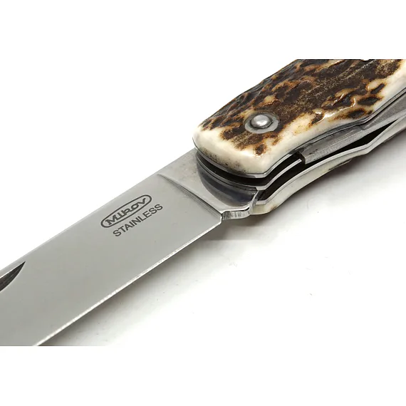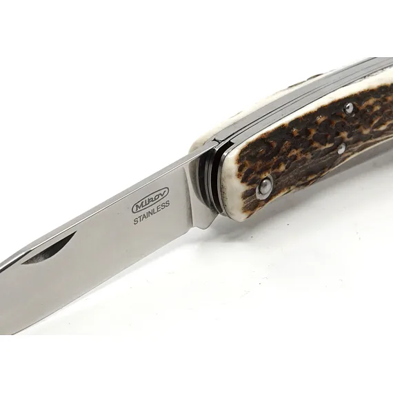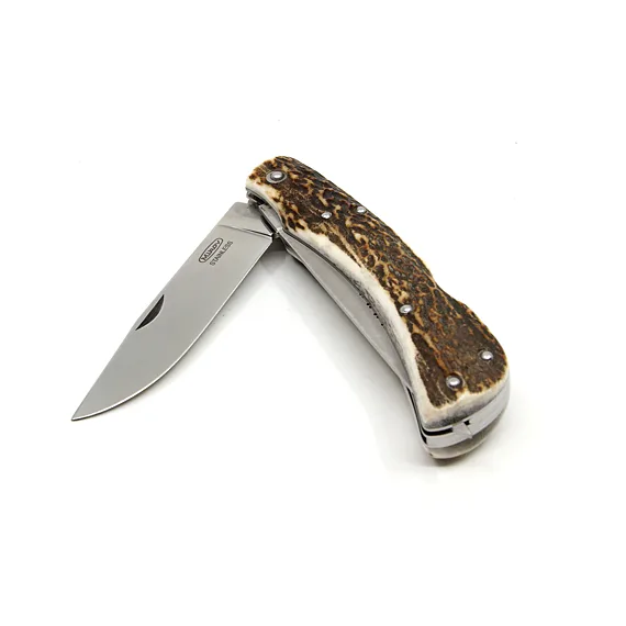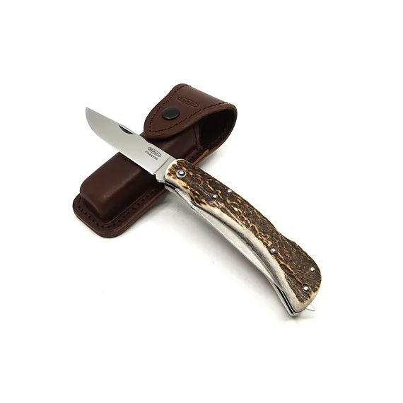 Pro výrobu střenky loveckého nože HUBERT jsme použili pravé jelení paroží. Čepel je vyrobena z kvalitní nerezové oceli 440A o tvrdosti 54-57 HRc. Čepel loveckého nože HUBERT je jištěna bezpečnostní pojistkou backlock. Lovecký nůž HUBERT je vybaven také velkou praktickou prodlouženou pilkou s otvíráním z čela nože - bez nehetníku, bez pojistky. Lovecký nůž HUBERT je dodáván včetně kvalitního koženého pouzdra s logem Mikov.