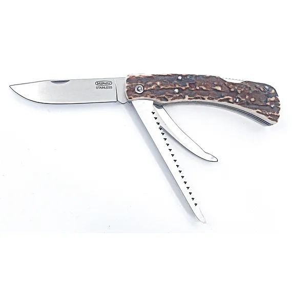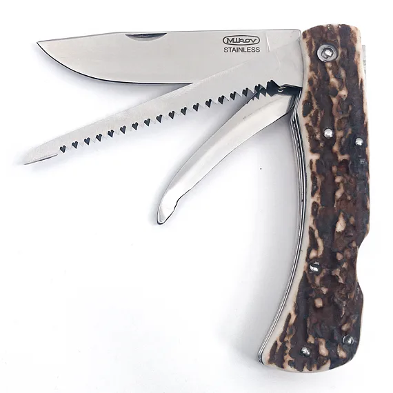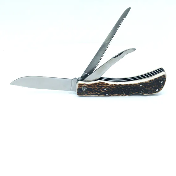 Lovecký zavírací nůž HUBERT 3dílný s pilkou a páráčkem - střenka paroh 245-XP-3