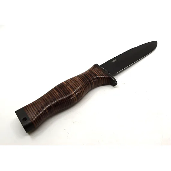 Nůž PRAKTIK LM má rukojeť z oválných kožených kroužků, délka rukojeti 12 cm.