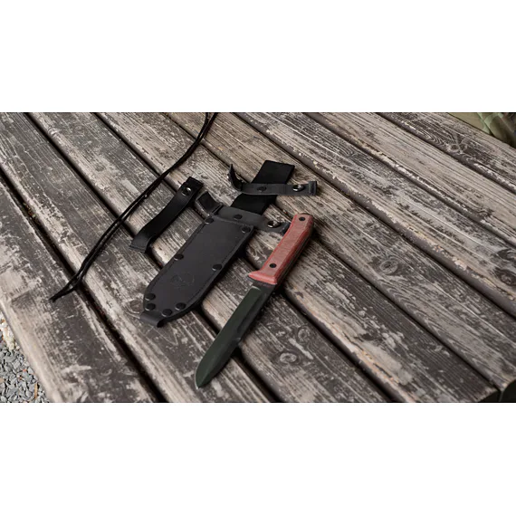 REPETITOR je integrální nůž s červenými příložkami z materiálu Micarta.
