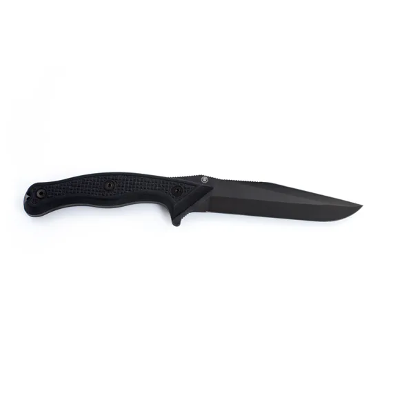Rukojeť nože je soudkového typu s příložkami z materiálu G-10 černé barvy. Ergonomie je navržena tak, aby vyhovovala všem uchopům bez ohledu na velikost ruky.