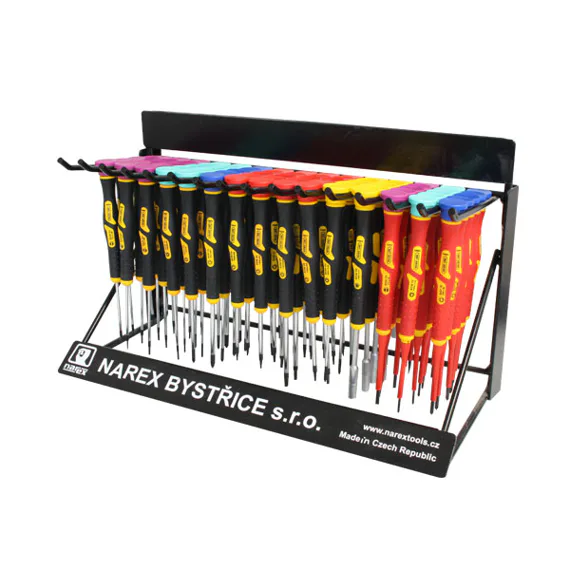 Zavěsitelný stojánek pro šroubováky pro maloobchody.