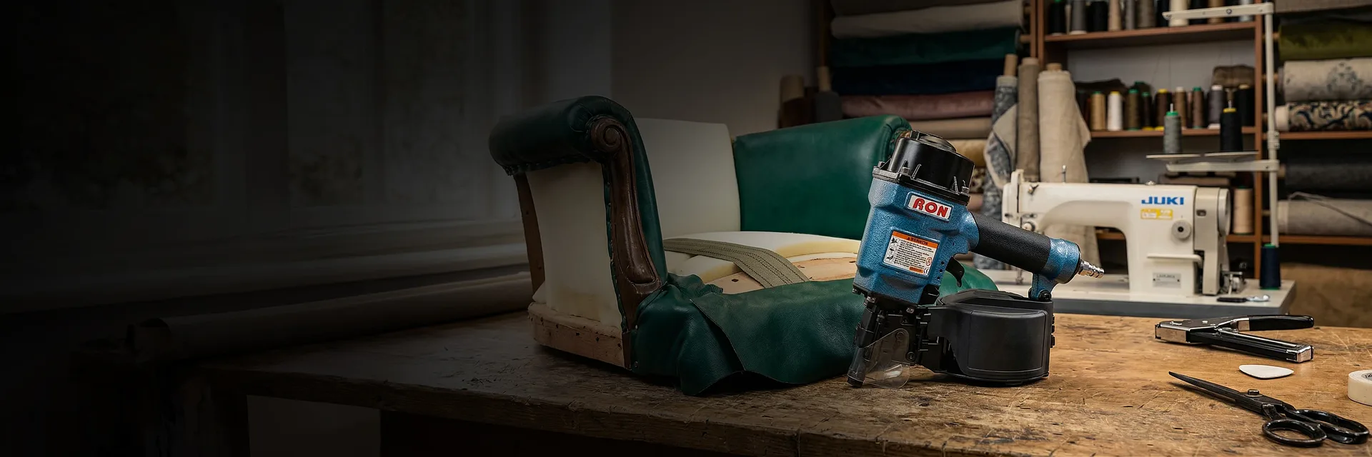 - Sponkovačky a bradovačky: Kompaktní a rychlé nástroje (často kombinované), které plynule nastřelují čalounické spony nebo brady.