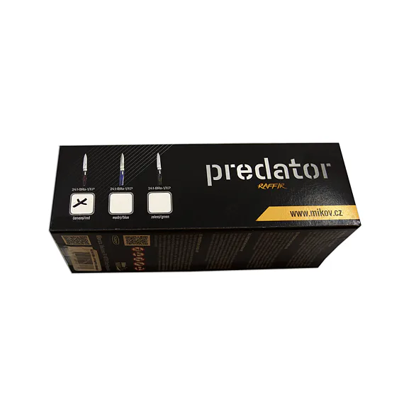 PREDATOR RAFFIR je vyráběn pouze v jednodílném provedení a je dodáván s luxusním koženým pouzdrem s poutkem na opasek.