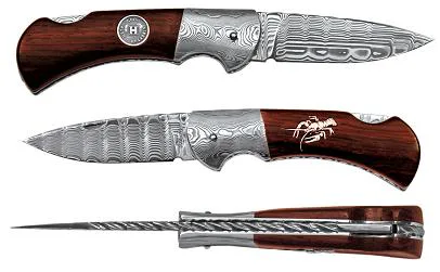 Vyhazovací zavírací nůž HABLOCK - damašek, paroh 220-DD-1