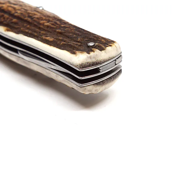 Střenka nože je vyrobena z pravého jeleního parohu, který je velice oblíbený mezi lovci a milovníky přírody. Svým tvarem zaručuje nejen příjemný a pevný úchop, ale zároveň brání sklouznutí ruky a poranění.