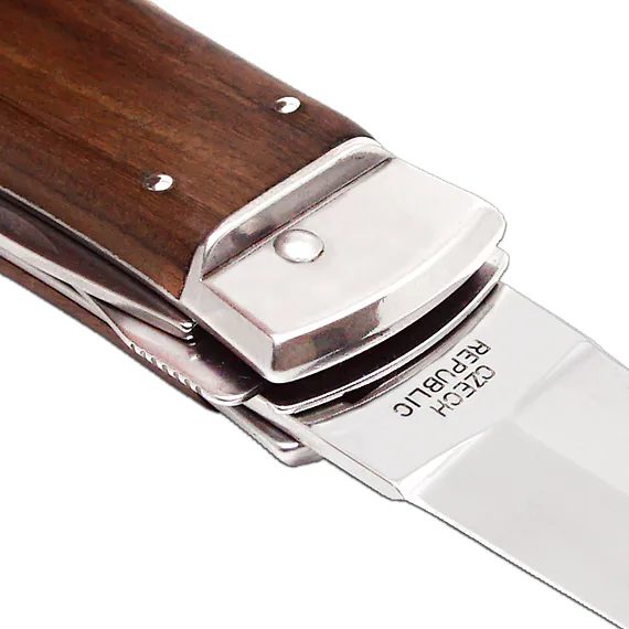 Střenka nože je vyrobena z kvalitního exotického dřeva PALISANDER SANTOS. Svým tvarem zaručuje nejen příjemný a pevný úchop, ale zároveň brání sklouznutí ruky a poranění.