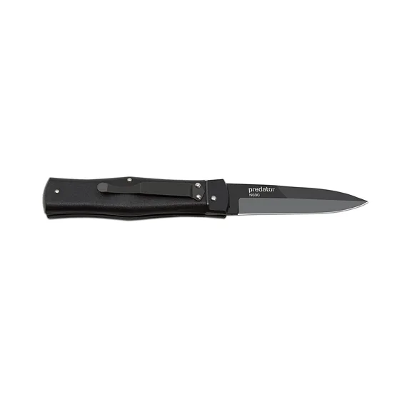 Nůž PREDATOR BLACKOUT s klipem (CELOČERNĚNÝ) je vyhazovací, automatický nůž firmy Mikov, která sídlí v srdci Českého Švýcarska ve městě Mikulášovice. Jednou z mnoha výhod nože BLACKOUT je, že se nůž dá rychle otevřít jednou rukou.